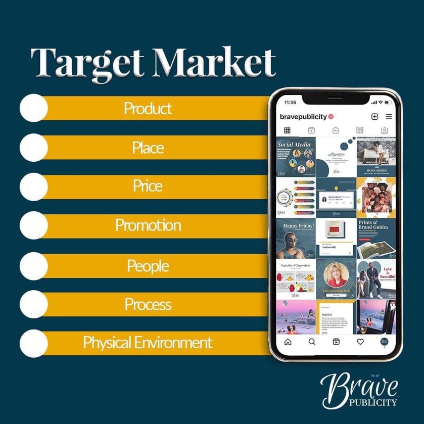 Without clarity about the 7P’s, you may have a great idea, product or service but find yourself driving publicity for a wrong market, using the wrong mediums or communication assets for your brand.